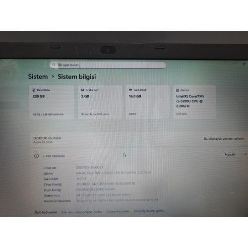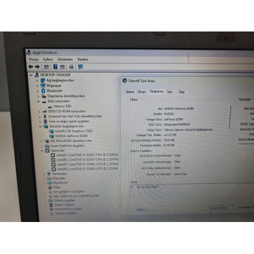 İNTEL İ5 İŞLEMCİ + 16 GB RAM + 256 GB SSD + NVİDİA GT 920M 2 GB