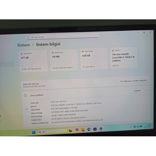 ASUS ZENBOOK İ7 11.NESİL + OLED EKRANLI ÖZEL CİHAZ+ HAFİF