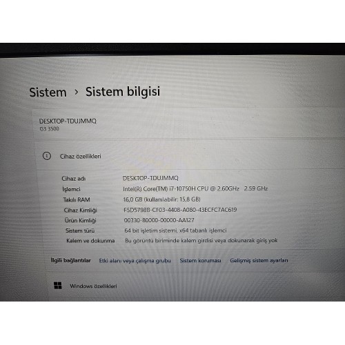 DELL İ7 10.NESİL + GTX 1660Tİ 6 GB + 120 HERZ + TEMİZ+ KUTULU