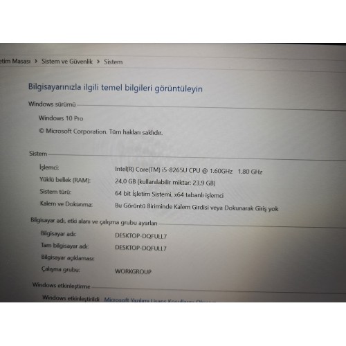 DELL + İ5 8.NESİL + 24 GB RAM + 256 GB SSD + İNTEL HD EKRAN KARTI VARDIR
