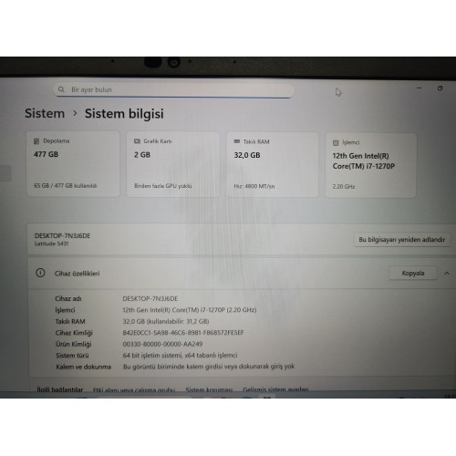DELL LATITUDE + İ7 12.NESİL + 32 GB RAM + MX 550 + GARANTİLİ