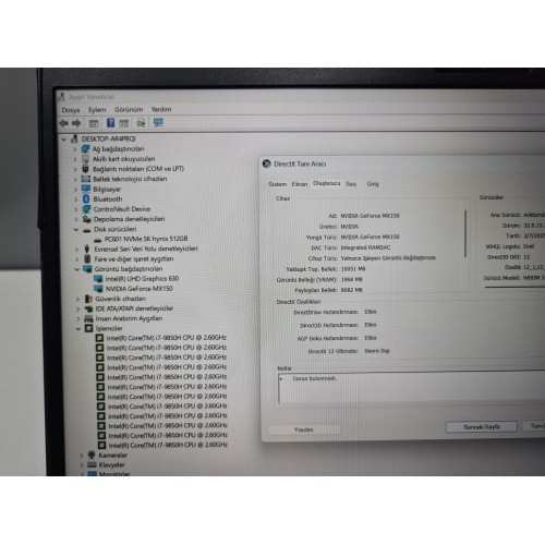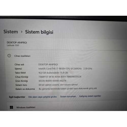 DELL LATITUDE 5501 SERİSİ + İ7 9850H PERFORMANSI YÜKSEK İŞLEMCİ TURBO İLE 4.6 GHZ+ 16 GB DDR4 RAM + 500 GB SSD + NVİDİA MX 150 2 GB HARİCİ EKRAN KARTI VARDIR